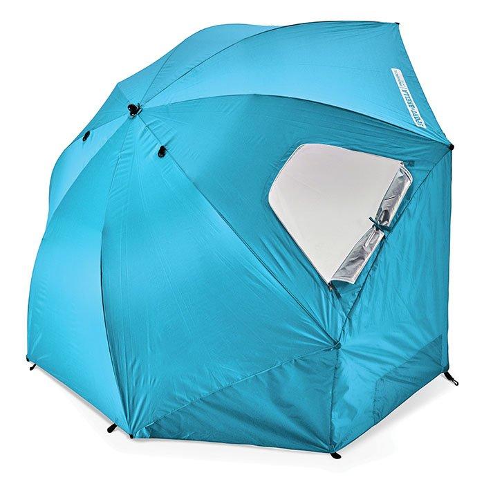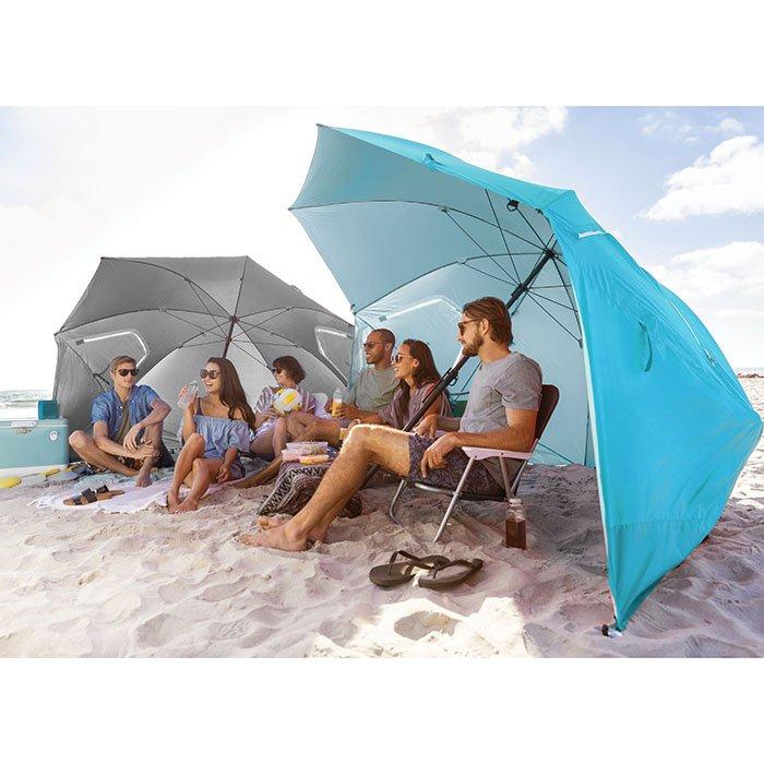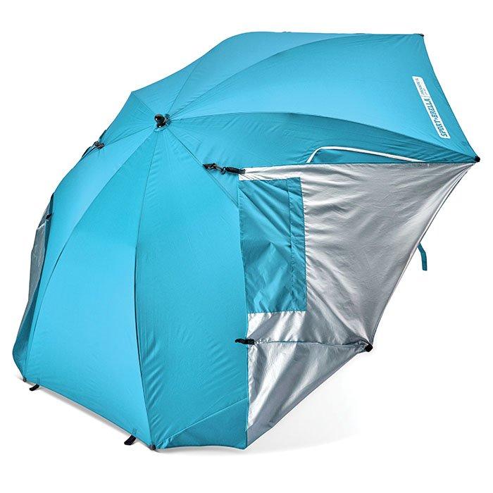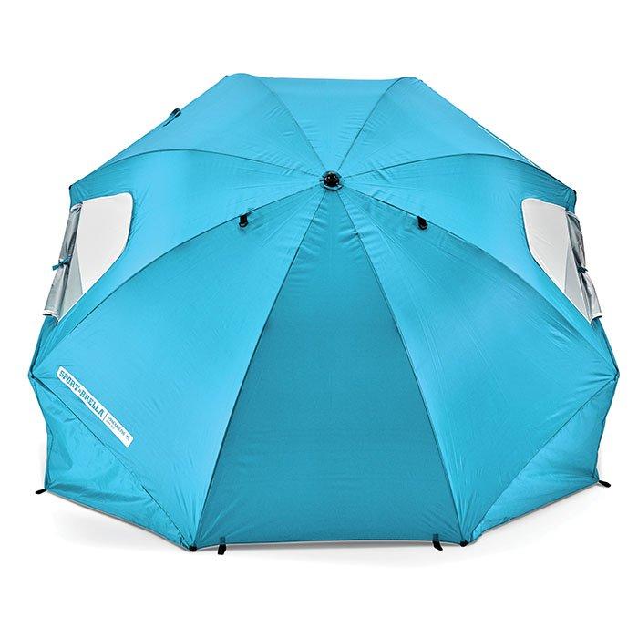 With every feature under the sun and rain, the extra-large SKLZ 9' Sport-Brella Premiere XL features UPF 50+ sun and weather protection, a heavy-duty 1.25" centre pole, oversized auger bit with integrated twist handle and patented side panels for increased privacy. Use it at sporting events, concerts, the beach, camping and even in the backyard. Its zippered windows open to allow in a cooling breeze while helping prevent the umbrella from blowing away. At the same time, the patented side panels include external stow-away clips that allow the flaps to be stored when the umbrella's in the upright position to increase your viewing area. Two reinforced internal pockets are perfect for storing your phone, snacks and other gear. And when you're ready to pack up, the Sport-Brella Premiere XL stores easily in a reinforced carry bag that includes stakes for securing it to the ground.