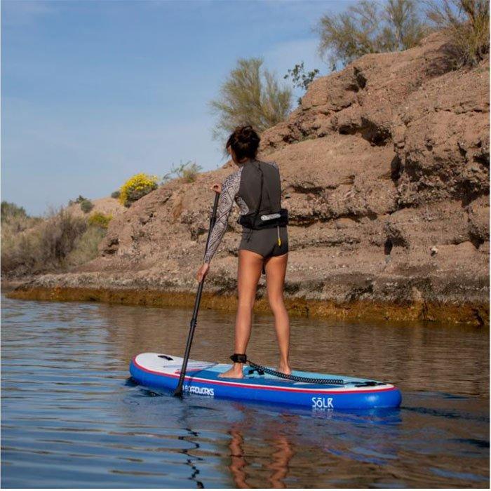 The SHUBU Solr is the latest all-around inflatable recreational board from Boardworks that is perfect for cruising, yoga or even fishing on calmer waters like lakes, rivers, and harbors. The Solr comes with a three-piece, adjustable paddle, and is equipped with an ultra-comfortable Honey Fomb heat embossed deck pad and two neoprene carry handles for easy transport to and from the water. The SHUBU Solr package is a stable, versatile, and travel-friendly recreational board that is perfect for beginners or intermediate paddlers who want to get on the water and start paddling today.