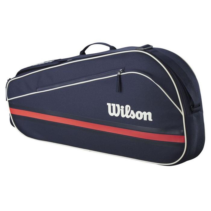 The Wilson Team 3-Pack Bag is a compact and practical tennis bag for players wanting to carry up to three racquets and other essentials. This Wilson tennis bag's full racquet compartment keeps gear safe and secure, while the large outer pocket offers quick access to accessories like tennis balls and grips. Featuring a padded shoulder strap and top grab handle, the Wilson Team 3-Pack Bag is easy to transport with comfort and ease. This Wilson tennis bag is suitable for beginners or club players seeking streamlined organization for racquets and more tennis gear.
