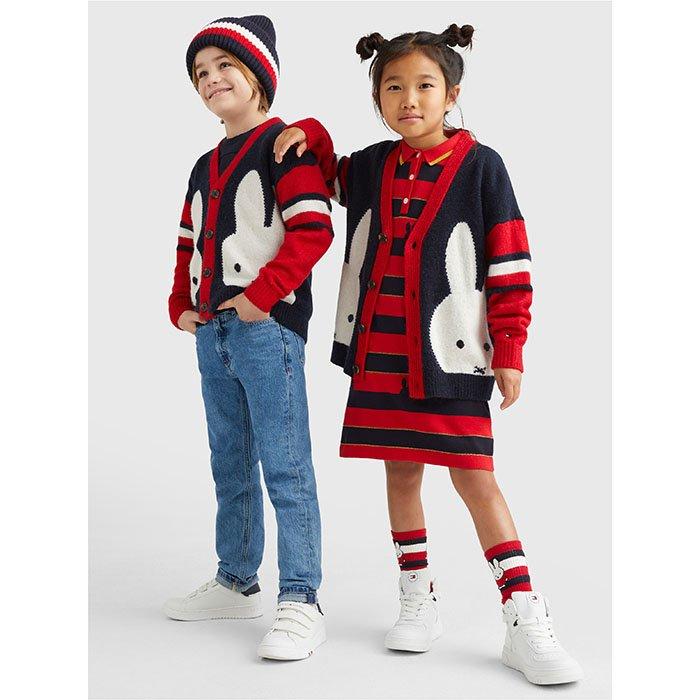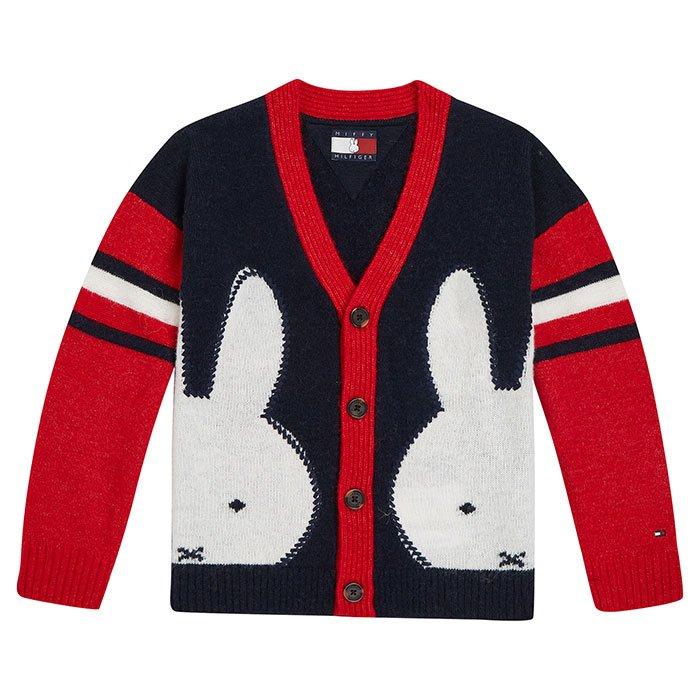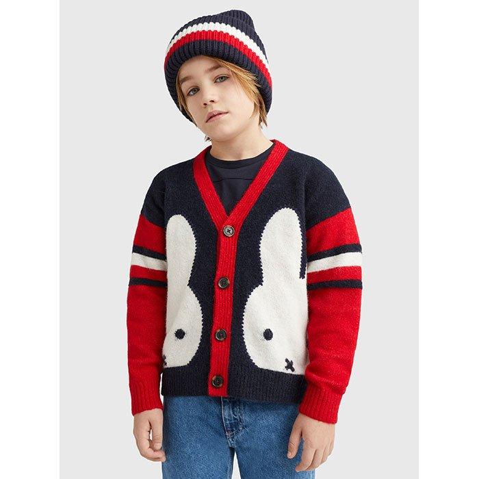 The kids' TOMMY X MIFFY Varsity Cardigan is a Tommy Hilfiger design for stylish boys and girls. Classics get playful with the beloved picture-book bunny featured on this knit wool-blend sweater.