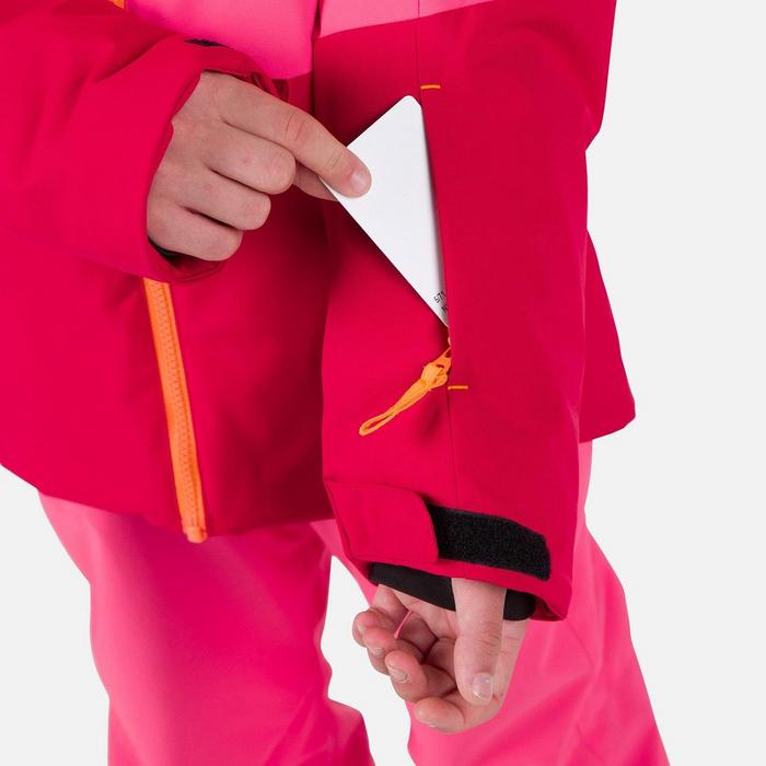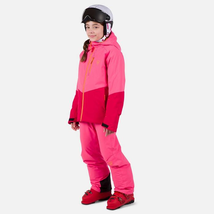Outfit your junior skier with the Rossignol Wispile Jacket for kids, crafted to endure harsh elements while ensuring maximum comfort. This ski jacket offers robust wear resistance. With a PFC-free durable water repellent finish and a 20k/15k waterproof-breathable membrane, it keeps your child dry in wet conditions. Key features include a fixed hood with a front gaiter, adjustable cuff tabs, and an integrated powder skirt with anti-slip silicone. The Rossignol Wispile Jacket also provides ample storage with handwarmer pockets, a chest pocket, a ski pass pocket and inner pockets. Designed with a classic fit, it allows for freedom of movement, finished with an embroidered chest logo for a stylish touch.