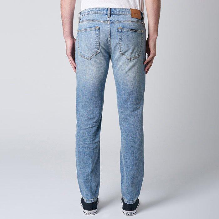The Rolla's Tim Slims is a mid-rise, slim leg jean for men made from a comfort denim that's washed to achieve a subtle textured character with an authentic look and feel. Looser fitting through the thigh and knee, this pair also features zip closure and an easy fitting waistband.