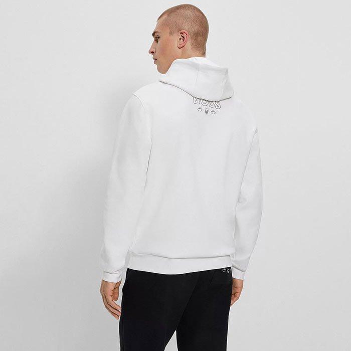 A sporty hooded sweatshirt by BOSS Menswear, cut to a regular fit in cotton-rich stretch fabric with statement collaborative branding. BOSS x NFL is a limited capsule that spotlights twenty-two popular NFL teams and celebrates the lifelong commitments that their players and fanbase make.