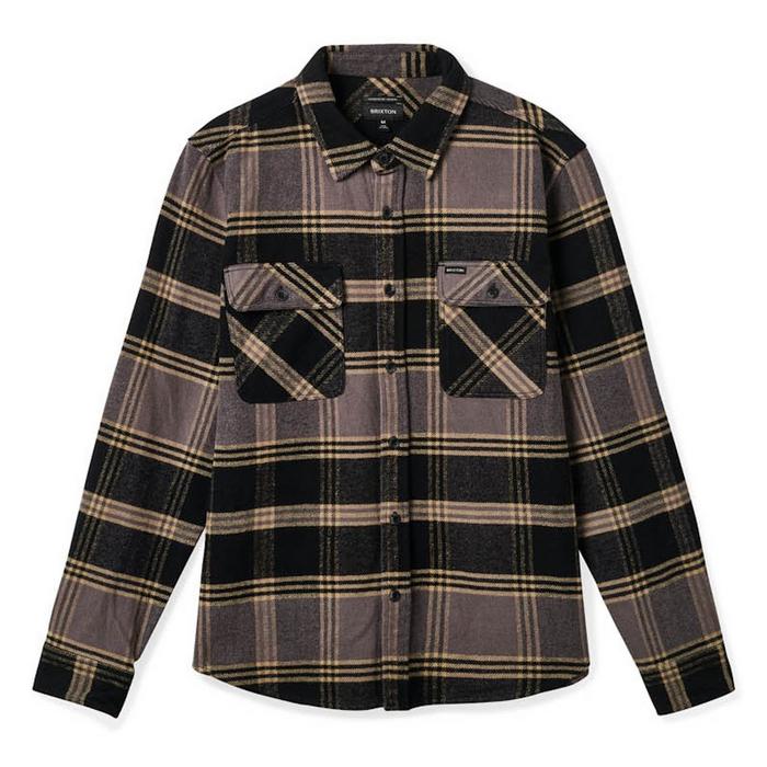 Wrap yourself in timeless style and comfort with the Brixton Bowery Heavyweight Flannel Shirt for men. Made with pure cotton, this heavyweight flannel boasts a softener wash for an incredibly cozy feel against the skin. The Brixton Bowery Shirt's yarn-dyed plaid pattern and clean-finished seams offer a classic look, while the pointed collar and front button closure add a touch of rugged sophistication. With long sleeves, a curved hem, and a chest pocket adorned with a woven label, this relaxed-fit Brixton shirt is a must-have for any man seeking durability and flair in his wardrobe.