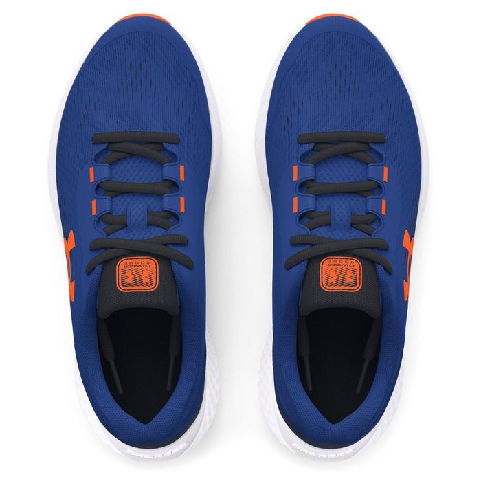 The kids' Under Armour Rogue 4 Running Shoe is crafted to keep boys and girls feeling comfortable and supported through every step. The engineered mesh upper ensures lightweight breathability, while the plush sockliner provides a soft, cushioned feel for long-lasting wear. The dual-density Charged Cushioning® midsole gives a responsive energy return to power forward movement, and the solid rubber outsole, reinforced with strategically placed pods, enhances grip and durability. With an external heel counter for added stability, these kids' Under Armour shoes are designed to keep up with active lifestyles.