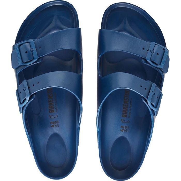 The BIRKENSTOCK Arizona is an icon with its timeless design. Modeled on the cork original, this sandal is made from ultra lightweight and highly flexible EVA. These timeless slides are shock-absorbing, waterproof and skin-friendly. Wear them at the beach, in the garden or around the gym and after workouts.