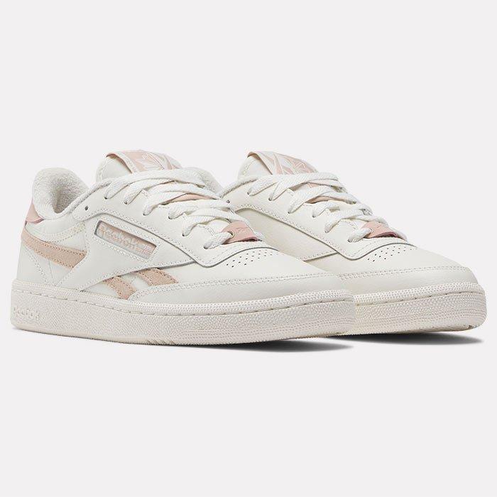 Channel the essence of retro tennis footwear style with the women's Club C Revenge Vintage Shoes by Reebok. Crafted in vintage-style leather, these sneakers offer a throwback look complemented by a classic gum sole. Archive-inspired, they bring a touch of the old-school cool to any outfit.
