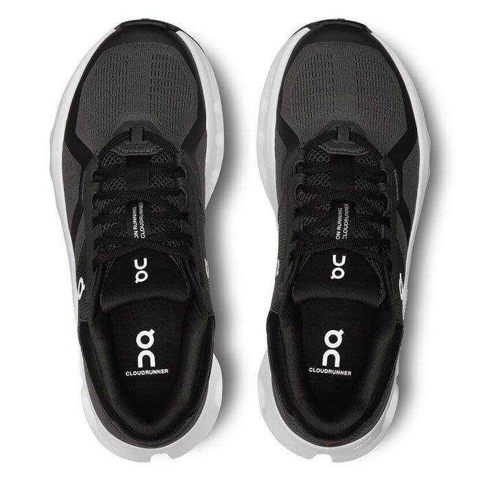 Feel the joy of running like never before with the On Cloudrunner 2. This women's running shoe shoe is designed to provide support and comfort, making every run feel like a breeze. The upper is made from 100% recycled Swiss-engineered mesh, offering breathability and a lightweight feel. The Helion superfoam midsole delivers a big energy return with every step forward. With CloudTec cushioning to absorb impact, a plush tongue and durable upper reinforcements for added support, the Cloudrunner 2 is built to propel you towards running greatness. Plus, the tongue loop keeps laces in place, so you can focus on your run without any distractions.