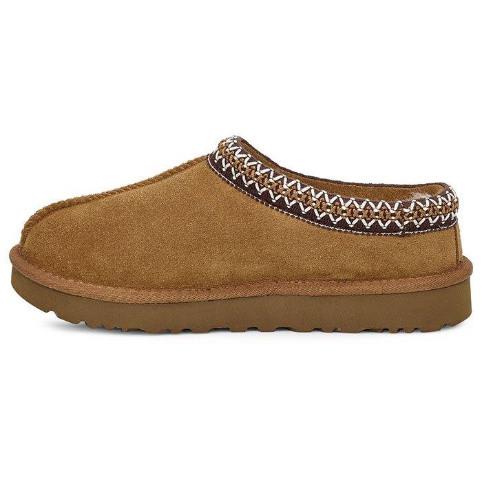 The Tasman from UGG is so much more than just a slipper. The upper is durable and flexible suede. It's fully lined in plush sheepskin and features UGG's heritage Tasman braid detailing on the cuff. This style is built on the Classic outsole, designed for use as a slipper or a shoe.