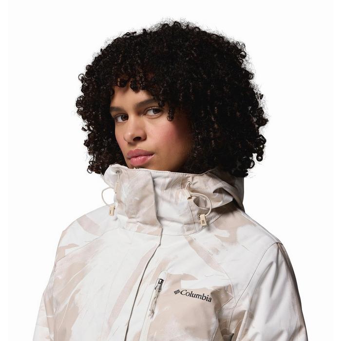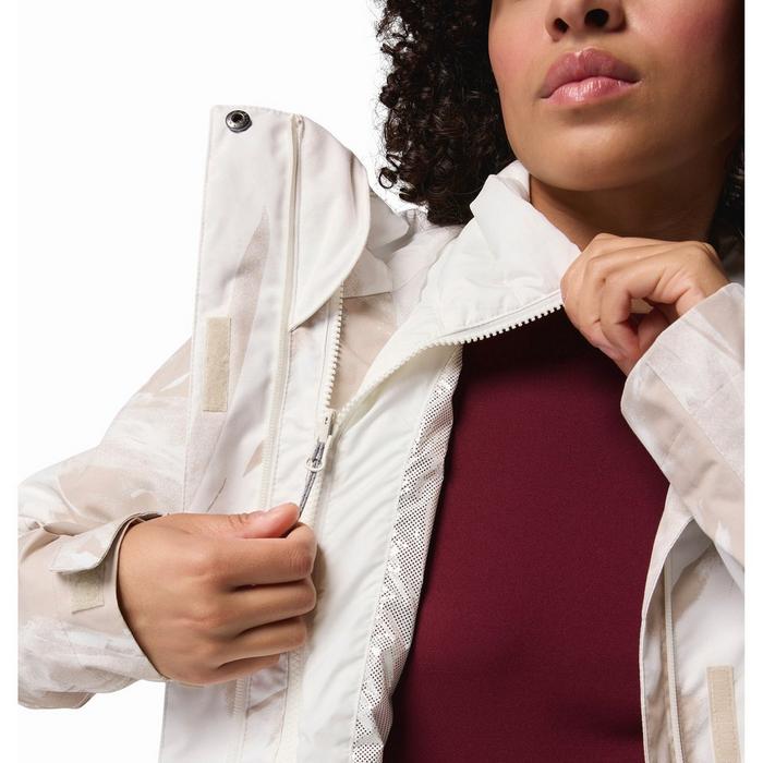 The women's Columbia Whirlibird V Printed Interchange Jacket is an outerwear icon for cold-weather fun. The Thermarator insulation is made from recycled materials, offering warmth with a sustainable focus. Combining a waterproof-breathable Omni-Tech shell with a thermal-reflective Omni-Heat liner, this 3-in-1 Columbia jacket lets you layer up or wear each piece independently based on your needs. The adjustable hood, powder skirt and underarm vents provide mountain-ready features, while the bold printed pattern adds personality to your winter gear. Multiple secure pockets make it easy to store everything from trail maps to gloves, ensuring you're ready for whatever the season throws your way.