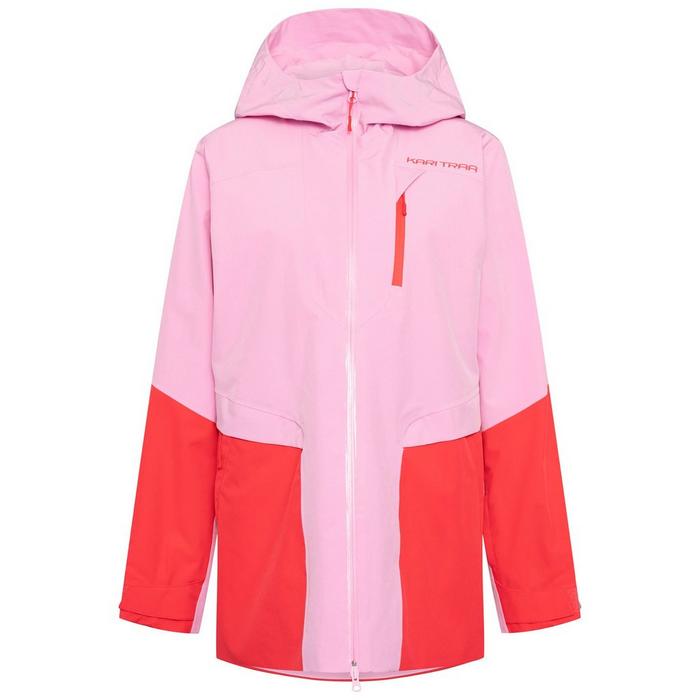 Hit the slopes in style and comfort with the Kari Traa Johanne Ski Jacket. This women's performance winter jacket is designed with a loose fit and ergonomic cutlines for unrestricted movement. It's fully seam sealed with welded details for added protection against wet snow. The Primaloft® synthetic insulation keeps you warm, while the Rudolf Bionic Finish ECO durable water repellent treatment further shields you from the elements. The jacket also features an adjustable hood, articulated sleeves and a two-way front zip closure for a custom fit. The zip ventilation, adjustable Velcro cuffs, and adjustable hem allow for personalized temperature control. The jacket also includes a removable powder skirt with stay-put silicone grip, secure chest and hand pockets, a ski pass pocket, and a goggle pocket.