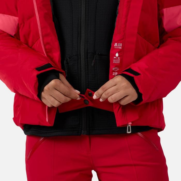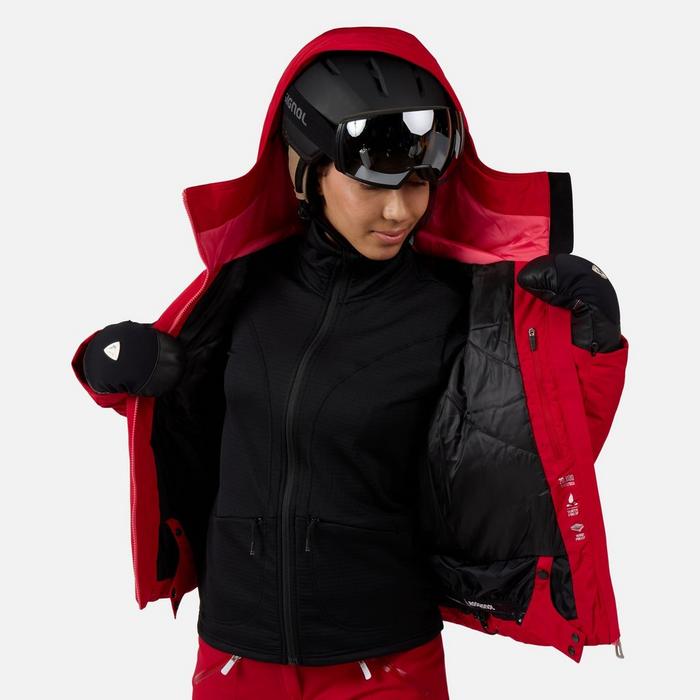 The women's Rossignol Wispile Puffy Jacket is a comfy winter jacket for skiing, snowboarding and more snow-filled adventures. The recycled Primaloft® insulation keeps you toasty, while a PFC-free durable water-repellent finish and 10k/10k waterproof-breathable membrane protect against moisture. Critical seam sealing and stretch side panels enhance mobility and comfort. The Rossignol Wispile Puffy Jacket also includes practical features like the fixed helmet-compatible hood, underarm vents and multiple pockets, plus a built-in goggle cloth and key holder.