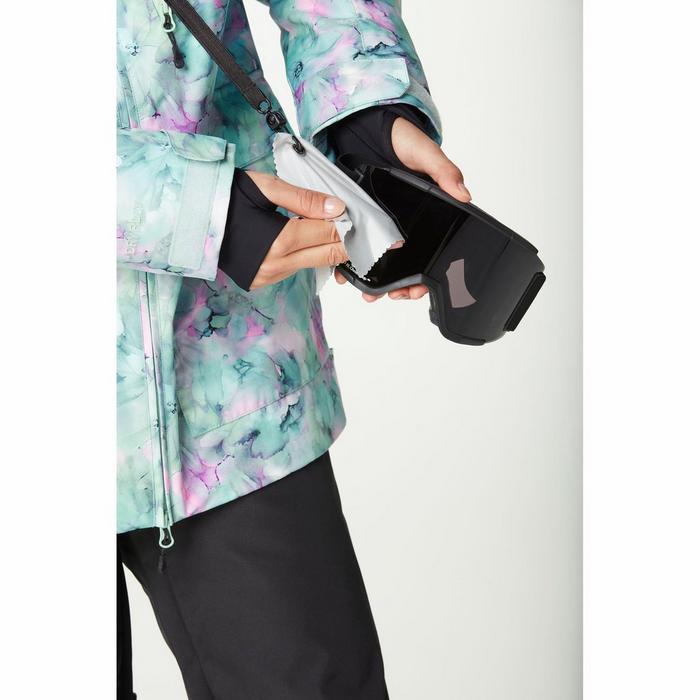The women's Glawi Jacket from Picture Organic Clothing features a Dryplay 10K/10K membrane and a Teflon Ecoelite PFC-free durable water repellent finish to keep you dry in various winter weather conditions. The bulk-free synthetic insulation is made from recycled Thermal STD, paired with an Engineered Thermal Dry System for added warmth. The seams are critically taped for enhanced weather resistance, and the hood is adjustable and ergonomic to further protect your face as you carve your way down the slopes. The Glawi also features a front zip closure with a snap storm flap, pit zip ventilation, stretchy wrist gaiters with thumbholes, adjustable hook-and-loop cuff and an integrated stretch snow skirt.