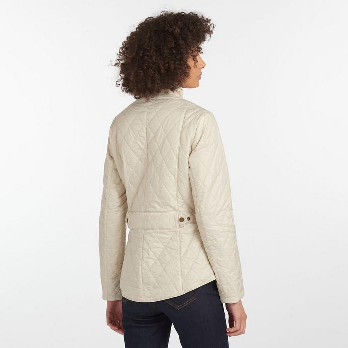A classic outer layer for the transitional weather, the Barbour Flyweight Cavalry Quilted Jacket for women offers essential warmth without excessive bulk. Made from a box-quilted nylon fabric, it features shaped front seams, a dipped rear hem and waist adjustment tabs to the back for a flattering silhouette without sacrificing practicality.