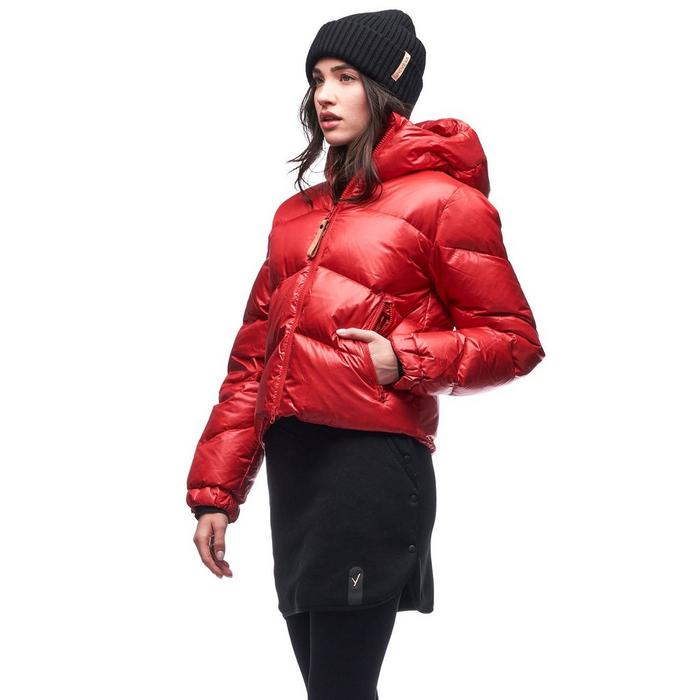 The women's Indyeva Short Puffer Jacket is certified by the Responsible Down Standard, OEKO-TEX and the Global Recycled Standard, ensuring ethical and sustainable production. The durable water repellent finish and Pertex Quantum technology provide protection from winter weather, while the windproof and breathable design amplifies comfort. The jacket features a fixed hood, a YKK front zip closure, elasticized cuffs, an adjustable hem and warm microfleece-lined hand pockets. This jacket is temperature rated down to -20°C, making it a reliable choice for cold weather.