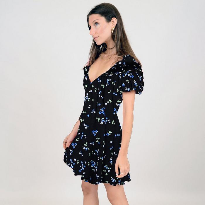 This sweet mini dress from Oak & Ivy is made for sunny summer brunch dates and picnics in the park. Decorated with a pretty allover floral pattern, this women's dress is a wardrobe stand-out with an open neckline, short puff sleeves, a tiered bottom design and subtle zip closure at the side body. Neat pleated details are featured at the bodice for a perfectly polished look.