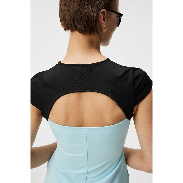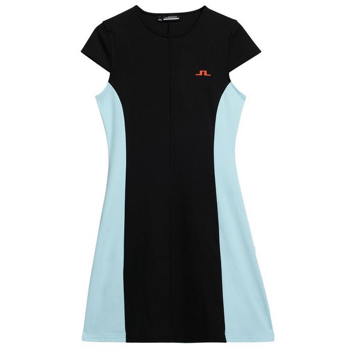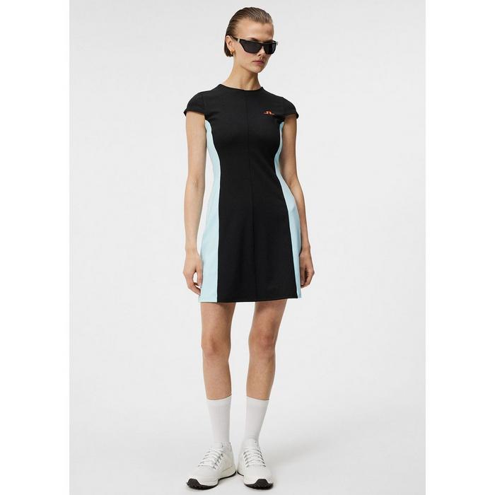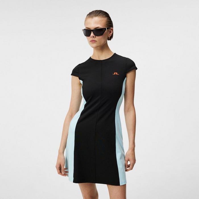 Engineered with 4-way stretch Sport Jersey fabric, the J.Linderberg Maxime Dress for women features an A-lined silhouette with superior moisture-wicking and quick-drying fabric that makes this design a great option for both the fairway and the farmer's market. Notable features include a fresh cutline on the sleeves, discreet side pocket with secure-zip closure and comfortable inner shorts, topped off with the iconic silicone logo print for a distinctive J.Lindeberg signature.