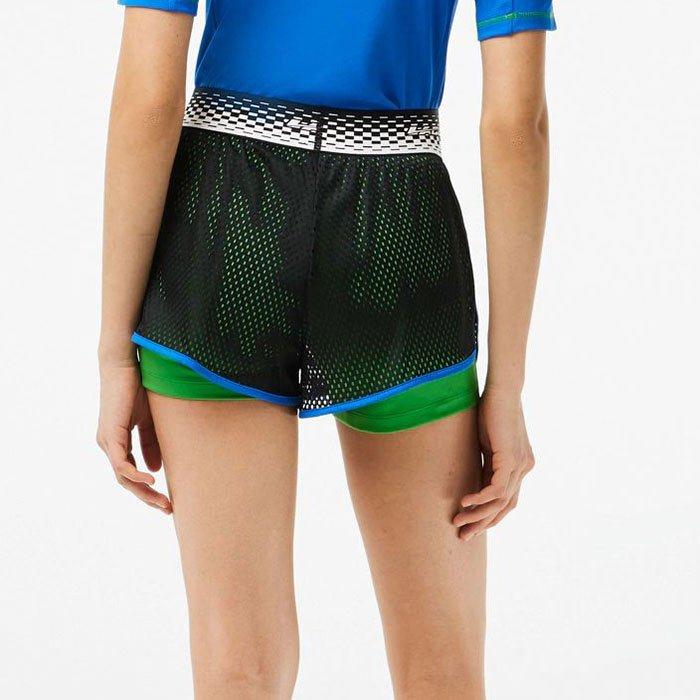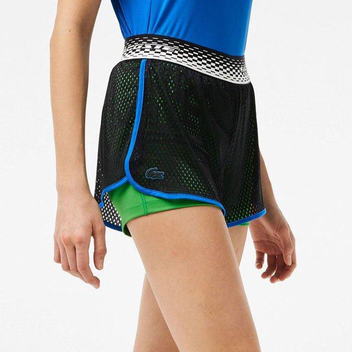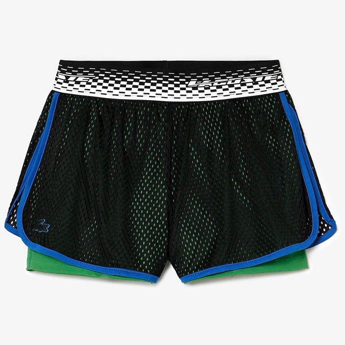 Technical fabric with superb detailing, signed Lacoste. The women's Lacoste Tennis Shorts with built-in undershorts bring historic tennis-ready style and modern performance to a court near you.