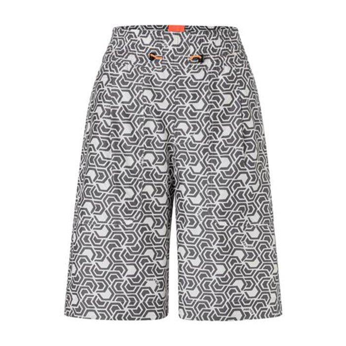 The smooth water-repellent material in a technical cotton blend defines the casual look of these women's Rosanna Bermuda Shorts from Bogner Fire + Ice. This pair is sure to impress with their shape-retentive, 2-way stretch fabric. Iconic brand accents and a print highlight these shorts, which are complemented with a functional drawstring waistband and topstitched pockets with pleats.