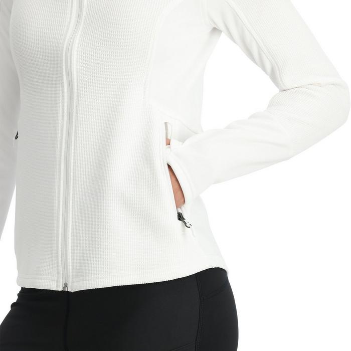 Versatile and fun, the women's Spyder Bandita Full-Zip Fleece Jacket wears well with jeans or ski pants. Lightweight bonded fleece delivers the warmth of wool and the caress of cotton, while stretch fleece on the side panels create a feminine fit that is sweater perfection. The possibilities for where this sweater fleece belongs are endless.