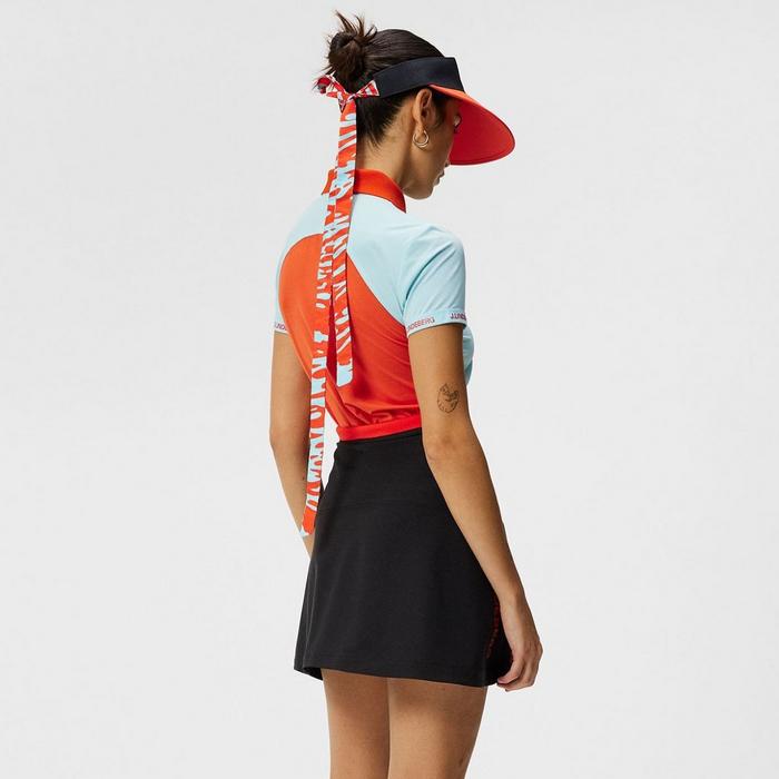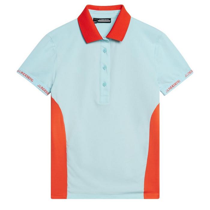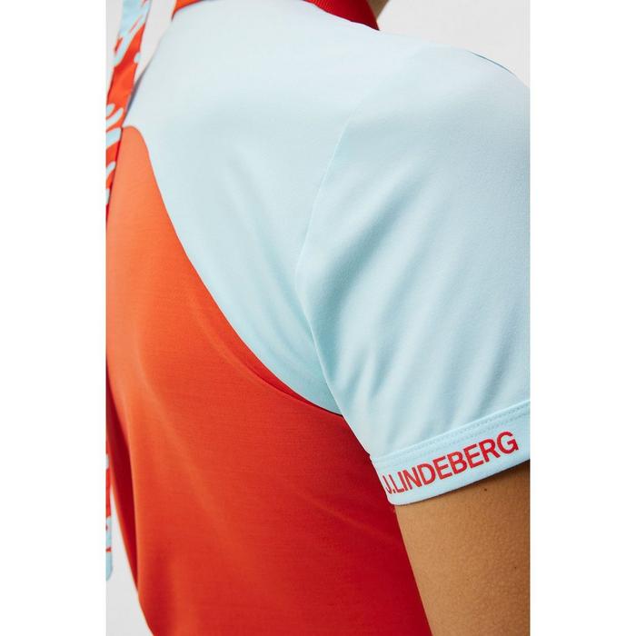 The women's J.Lindeberg Makena Polo features a soft hand feel, 4-way stretch and moisture-wicking performance to support all-day comfort and help you power through every swing. This short-sleeved golf top features a turn-down polo collar, a 4-button placket, ribbed armbands and a signature J.Lindeberg logo at the left chest.