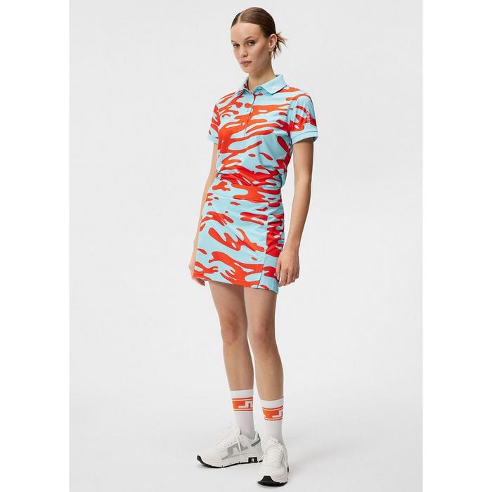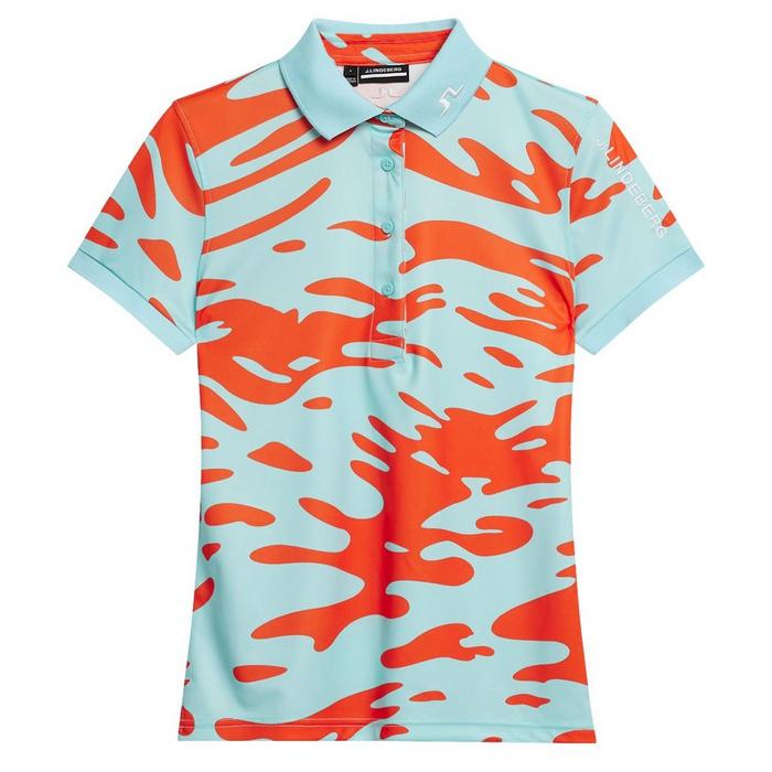 Dare to stand out on the fairway in the J.Lindeberg Tour Tech Print Polo for women. This best-selling golf polo is packed with performance-ready features like UPF 40+ sun protection, technical 4-way stretch and excellent moisture management. This short-sleeved active top features a classic ribbed polo collar with a 4-button placket and an allover logo print for trendsetters from the course to the clubhouse.