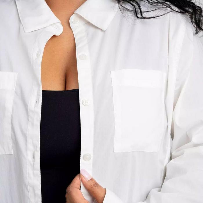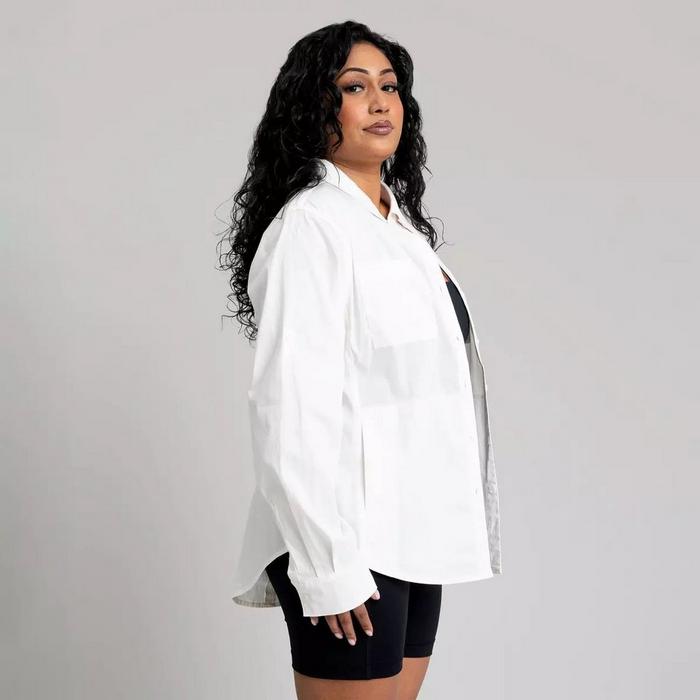 Meet your new favourite button-down. The women's In The Shade Shirt from alder is a durable, stretchy long sleeve with a breathable mesh back yoke and a roomy, oversized fit that looks great worn open or buttoned up. It features a classic shirt collar with full-length front button closure, four pockets and adjustable roll-up sleeves for versatile styling.