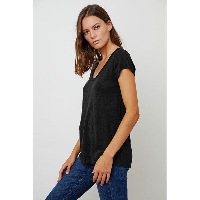 This soft cotton top is the perfect stand alone tee. With a scoop neck and vintage-cropped sleeve, this will be on heavy rotation in your closet.