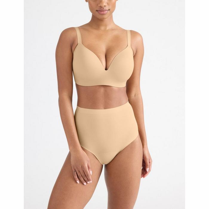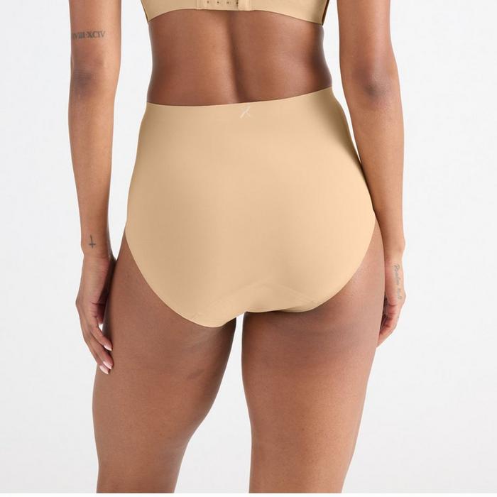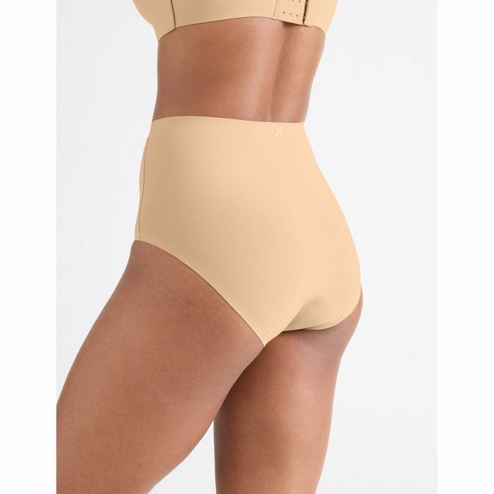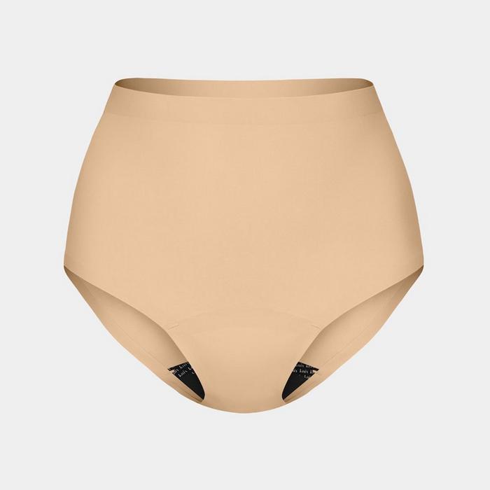 The women's Leakproof UltraThin No-Show High Rise Underwear is a comfortable, full-coverage design from Knix that revolutionizes the way you think about period protection. Soft and stretchy with smooth bonded seams, it features an ultra-thin built-in gusset liner that absorbs approximately the same amount as 2.5 super-sized tampons. This machine-washable period underwear is cut to a higher rise with full stomach, hip and bum coverage, plus a high-cut leg opening for a flattering fit made to conform to your body.