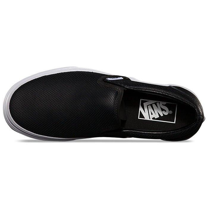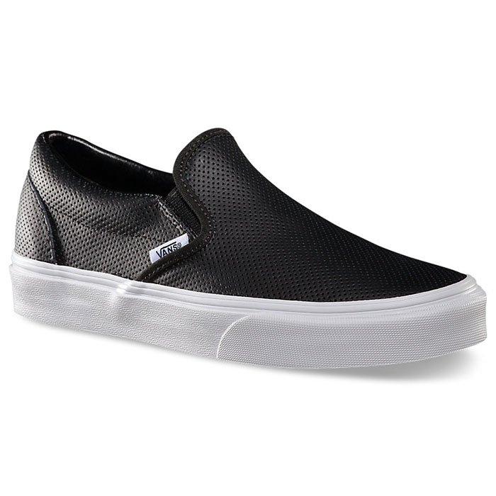 Les chaussures classiques Perf Leather possèdent une tige sans lacets en cuir perforé avec des élastiques latéraux décoratifs, une étiquette du logo et la fameuse semelle gaufrée en caoutchouc de Vans.