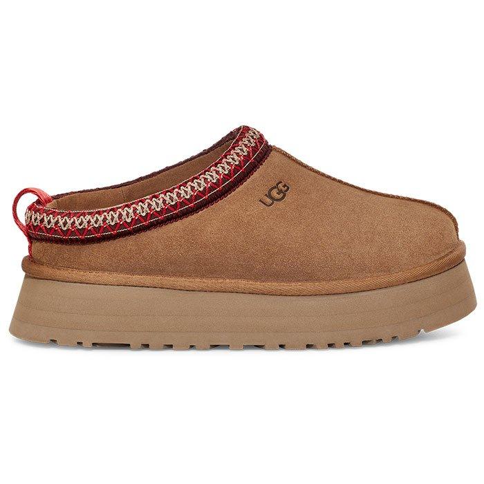 Une version maximaliste de l'indémodable Tasman, le chausson UGG Tazz pour femmes rafraîchit la silhouette familière avec une semelle compensée de 1,5 po pour un amorti et un style accrus. Fabriquées en daim riche et mat, elles sont doublées d'un mélange de laine UGGplush signature pour une sensation de chausson à l'intérieur comme à l'extérieur. La semelle extérieure de ce produit est soit une semelle SugarSole, qui est un composé responsable utilisant de la mousse de canne à sucre qui permet à UGG de réduire la dépendance aux combustibles fossiles en remplaçant l'éthylène à base de pétrole, soit une semelle Treadlite de UGG.