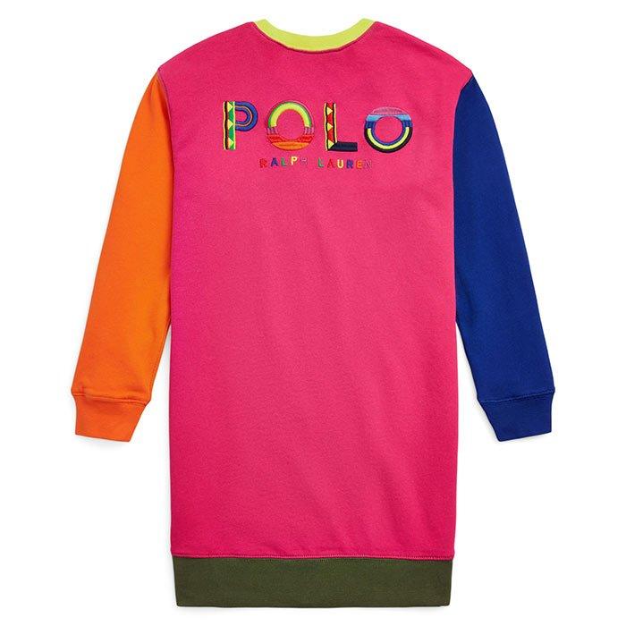 Une silhouette décontractée et la version ultradouce et légère de la bouclette de Ralph Lauren rendent cette robe chandail pour filles très confortable. Les blocs de couleurs et un logo aux couleurs vives dans le dos lui confèrent un style résolument RL.