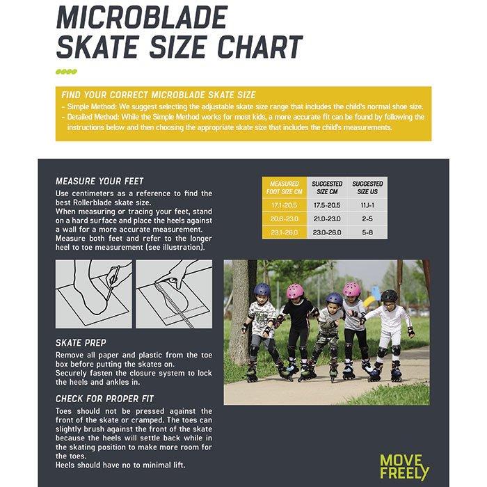 Le Microblade est un patin ajustable de haute qualité pour les patineurs juniors. Avec l'expertise de Rollerblade, ces patins à roues alignées sont ajustables en quatre pointures. Ce système, facile à utiliser, fonctionne par simple pression d'un bouton et comporte des repères au bout du pied pour ajuster le patin à la bonne taille. L'empeigne en filet améliore la respirabilité et le confort pour s'adapter aux besoins des jeunes. La conception de son cadre abaisse le centre de gravité pour améliorer la stabilité, l'équilibre et le contrôle.