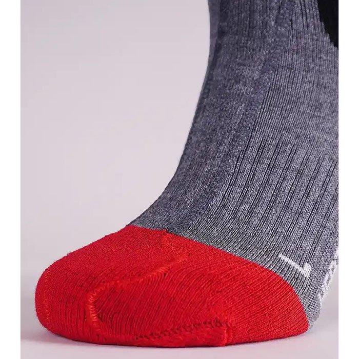 Vous n'aurez jamais les pieds gelés avec la technologie brevetée Toe Cap. L'élément chauffant plat cousu n'est pas encombrant et procure une chaleur totale pour les orteils : jusqu'à 14 heures lorsqu'il est combiné à des piles compatibles*. Les chaussettes chauffantes 5.1 Toe Cap de Lenz à coupe étroite sont idéales pour les pieds étroits et les jambes élancées. Elles sont tricotées de manière ergonomique pour un ajustement optimal et le bandage autour du pied offre un soutien agréable. Le protège-tibia intégré ainsi que d'autres renforts au niveau des orteils et du talon évitent les points de pression. Le mélange sophistiqué de laine mérinos, de soie et de fibres fonctionnelles est confortable, sèche rapidement et évacue efficacement l'humidité. La chaleur peut être contrôlée directement sur la pile au lithium en option ou sur l'application de Lenz sur votre téléphone.