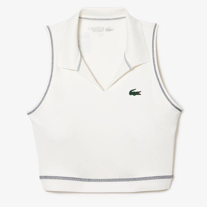 Ce polo court sans manches Sport pour femmes de Lacoste est prêt pour l'action avec son tissu durable et absorbant qui reste confortable durant les matchs difficiles. Il possède une coupe ajustée avec un logo de crocodile emblématique sur la poitrine.