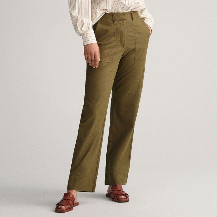 Alternative élégante au jean, ce pantalon cargo à coupe décontractée pour femmes de GANT est confectionné en sergé de coton et comporte plusieurs poches cargo pour un style utilitaire moderne. Il possède une coupe décontractée, une taille mi-haute, une jambe droite, un ourlet court et des passants de ceinture.