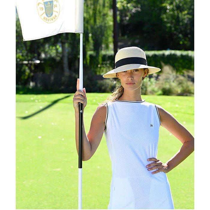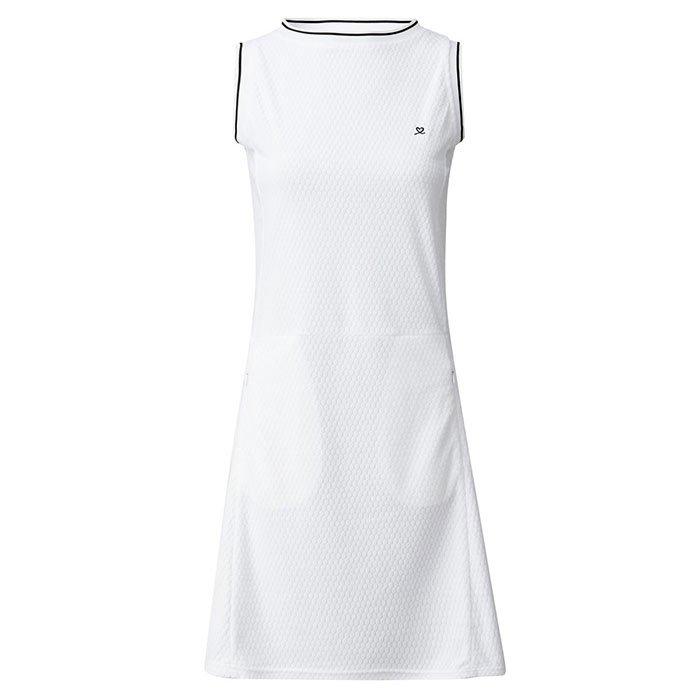 La robe Mare pour femmes de Daily Sports est faite de tissu éponge doux. Prête à vous accompagner dans toutes vos activités sportives, du parcours de golf au terrain de pickleball, cette robe sans manches affiche un logo brodé sur le devant et une garniture rayée côtelée à l'encolure.