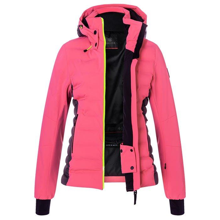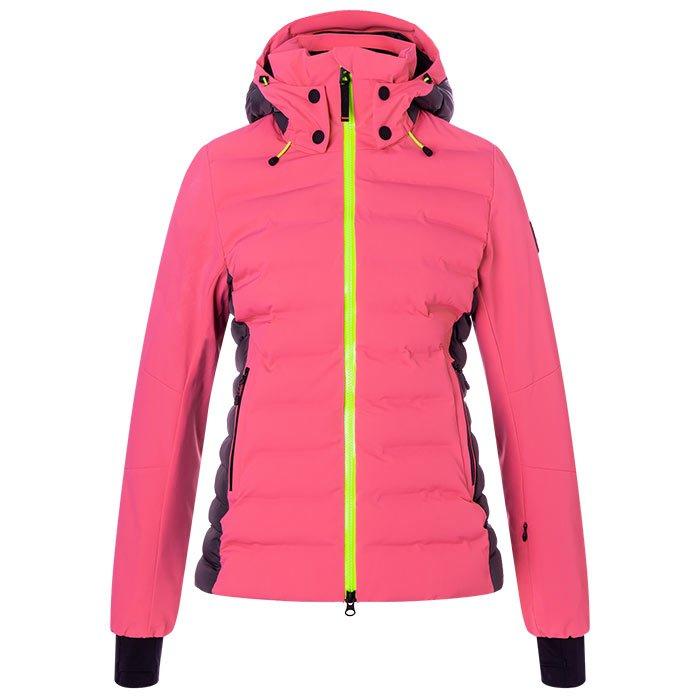 Avec son look contrasté à doubles couleurs, la veste de ski Janka pour femmes de Bogner Fire + Ice est un vêtement alpin avec des propriétés confortables à porter grâce à son tissu technique de qualité respirant et résistant à l'eau, et au rembourrage Thermore Ecodown. Les cordons de serrage au capuchon et à l'ourlet offrent une finition avec détail de la marque, élégamment complimentés par des poches zippées.