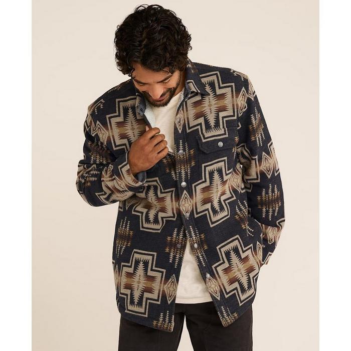La veste-chemise pour hommes Bay City arbore le motif de couverture emblématique Harding Oxford de Pendleton, lui donnant un look unique et intemporel. Elle est doublée et légèrement isolée pour plus de chaleur et de confort. La veste-chemise Bay City de Pendleton est dotée d'un col pointu, d'une fermeture à pression sur toute la longueur à l'avant, et des manches longues isolées. Cette veste-chemise de Pendleton comprend aussi des poches latérales sur les coutures et des poches à rabat sur la poitrine, en plus d'un ourlet en forme de queue de chemise.