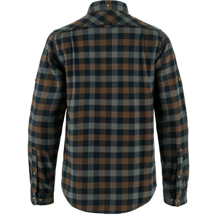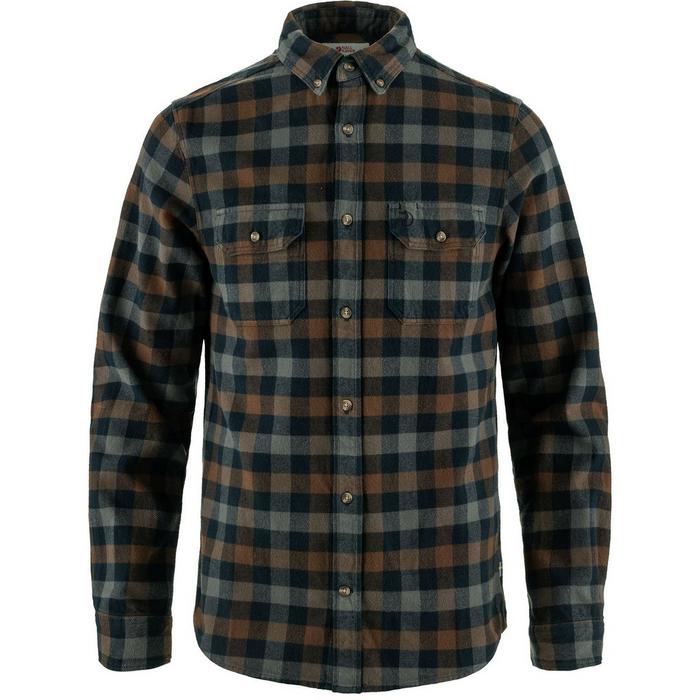The men's Fjallraven Skog Shirt is an everyday long sleeve with a flattering slim fit in wonderfully thick cotton flannel. It features two buttoned flap pockets at the chest and buttons to hold rolled-up sleeves in place.