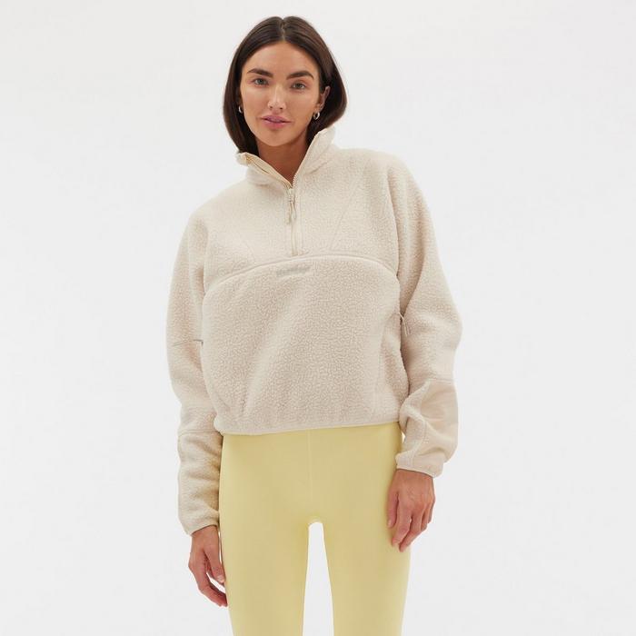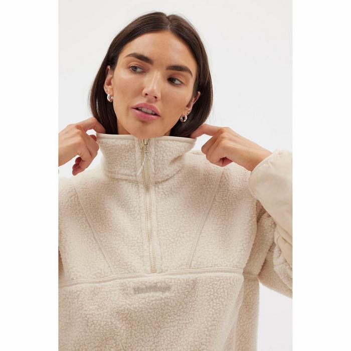 The women's Halfdays Pieper Fleece is a quarter-zip top that is not just cozy, it's made to last with luxuriously-soft sherpa fleece fabric. This Halfdays top features a stand collar, a quarter-length front zipper, and a straight hem. This relaxed-fit fleece also comes with front pockets and a large back pocket. Made from recycled fabrics, it's eco-friendly and has a PFC-free durable water repellent finish (DWR) to shed light rain or flurries.